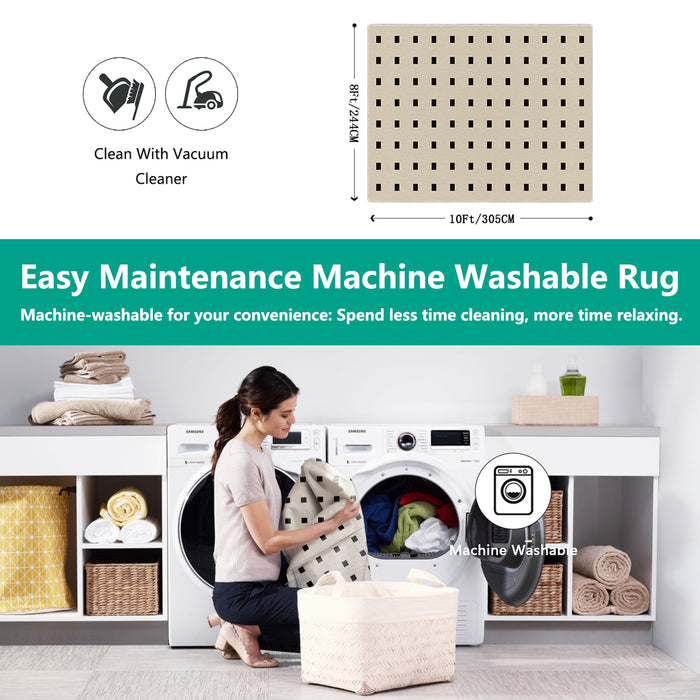 Airgugu rugs simplify care with machine washability and a waterproof surface.